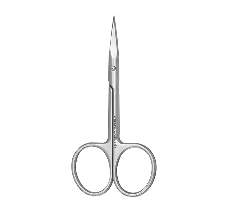 Die Staleks Classic Serie umfasst viele Varianten hochwertiger Scheren. Eines der besonders empfehlenswerten Produkte sind die universellen geraden Scheren aus rostfreiem medizinischem Stahl, Staleks Classic Modell SC-31/1. Aufgrund ihrer Präzision können Sie diese zum Entfernen von Nagelhaut, Kürzen von Nägeln und Formen der Augenbrauen verwenden.