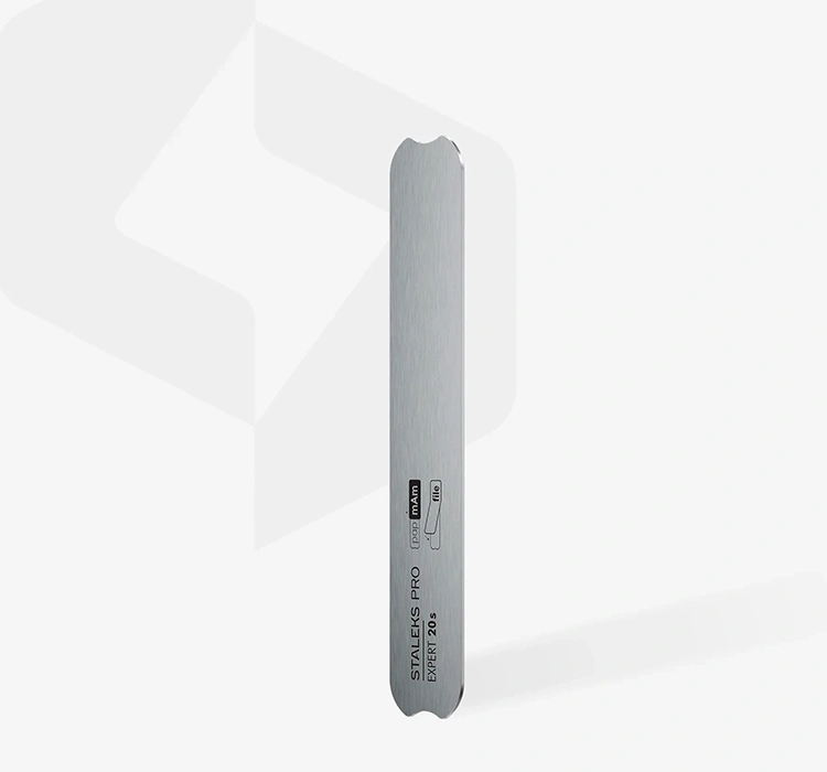 Die gerade Metallbasis Staleks Pro Expert 20s eignet sich ideal zum präzisen Feilen der Nagelform und der freien Nagelkante. Ihre ergonomische, gerade Form gewährleistet Stabilität und Kontrolle – unabhängig von der verwendeten Technik. Die Investition in eine wiederverwendbare Basis ist ein Schritt hin zu höchsten Sicherheits- und Hygienestandards.