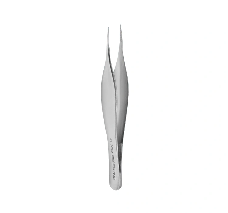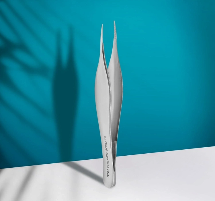 Die Bruchpinzette Staleks Pro TP-10 besteht aus hochwertigem Edelstahl AISI 420, der eine hervorragende Korrosionsbeständigkeit und Langlebigkeit gewährleistet. Die Kanten der Arbeitsfläche sind fein geschliffen und poliert, was eine präzise und schonende Behandlung ermöglicht. Dieses podologische Instrument ist ideal für den Einsatz in Kosmetik- und Fußpflegepraxen sowie für erfahrene Anwender bei der häuslichen Pflege.