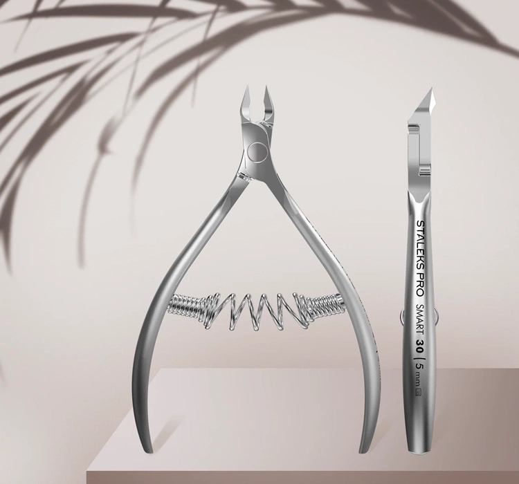 Professionelle Nagelhautzangen Staleks Pro Smart 30 wurden für präzises Schneiden der Nagelhaut bei klassischer Maniküre, Geräte-Maniküre und Pediküre entwickelt. Die Schneiden der Staleks Pro Smart 30 Zangen sind gerade, unter einem Winkel positioniert und mit einem charakteristischen Fersenansatz versehen, der exaktes und sicheres Arbeiten ermöglicht. Abgerundete, kurze Griffe verbessern den Halt, während die matte satinierte Oberfläche Lichtreflexionen minimiert und Komfort sowie Kontrolle beim Schneiden gewährleistet. Die herausnehmbare Spiralfeder erhöht die Lebensdauer und sorgt für einen sanften Bewegungsablauf des Werkzeugs.