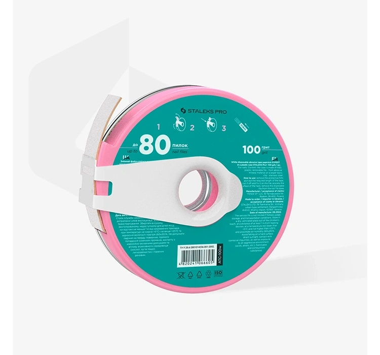 Expert White Schleifkorn Staleks Pro ist ein hochwertiges Material, das ästhetisch in der Anwendung ist und exzellente Effizienz bietet. Eine spezielle Beschichtung verhindert das Verstopfen des Schleifkorns durch organischen Staub, was Komfort, Sauberkeit und Langlebigkeit der Auflagen deutlich erhöht. Das 100-grit-Band ist ideal zum Formen und Anpassen künstlicher Nägel.