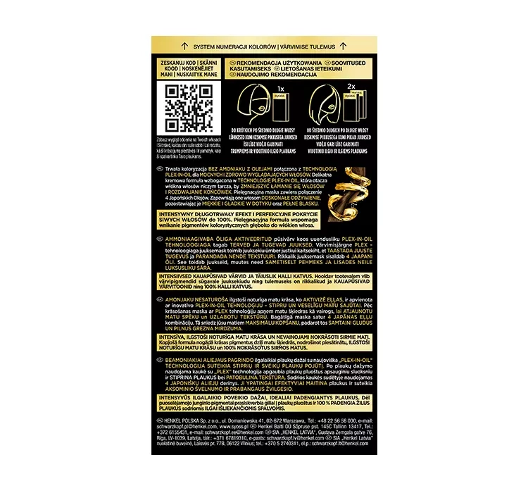 Die Oleo Intense Farbe ist die Kraft von Ölen, die dein Haar pflegen und es bis zu 3 Stufen aufhellen. Sie enthält kein Ammoniak und verleiht dem Haar eine sanfte, effektive Farbe.