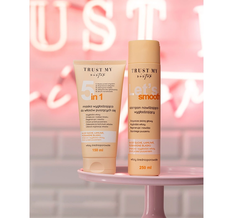 Trust My Sister ist eine junge polnische Marke, die sich auf die Pflege von Haaren mit unterschiedlicher Porosität spezialisiert hat. Die Mission des Unternehmens ist es, das Wissen und das Bewusstsein der Kunden über eine bewusste und umfassende Haarpflege Schritt für Schritt zu erweitern. Trust My Sister bietet Pflegeprodukte für niedrig-, mittel- und hochporöses Haar an. Jedes aufeinanderfolgende Produkt bereitet das Haar auf die Aufnahme des nächsten Produkts vor.