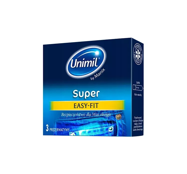 Die Kondome Unimil SUPER werden aus Latex (Naturkautschuk) hergestellt und sind mit einem speziellen Reservoir versehen. Sie haben eine bequeme bequeme Easy-Fit-Form und eine glatte Oberfläche. Ihr Durchmesser beträgt 53 mm. Eine Packung enthält 3 Kondome.