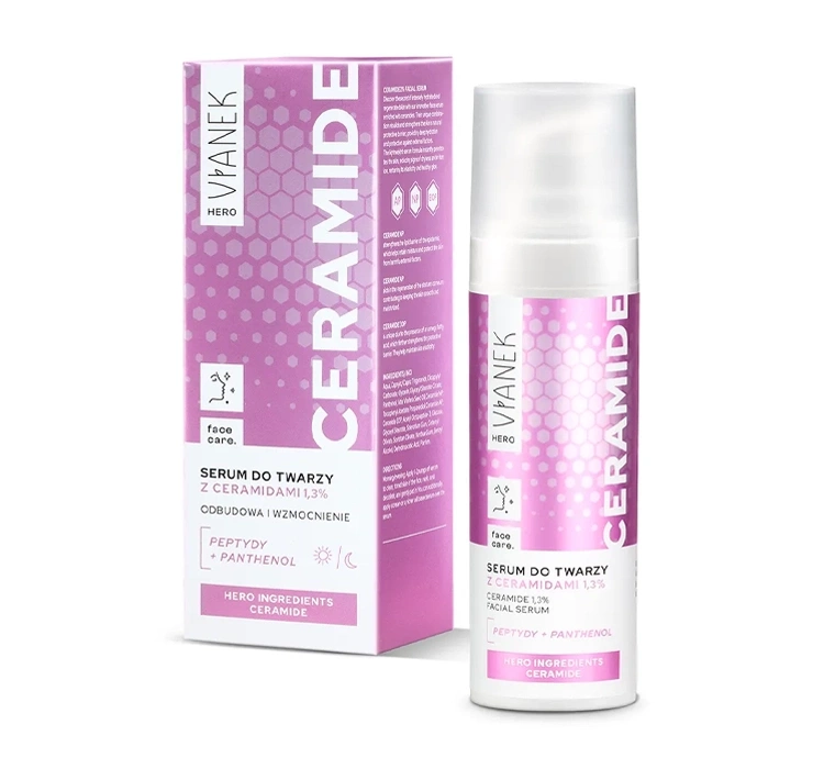 Vianek Hero Gesichtsserum mit Ceramiden ist die ideale Wahl für die tägliche Pflege aller Hauttypen, insbesondere für trockene, dehydrierte Haut mit geschwächter Hydrolipidbarriere. Seine leichte Formel zieht sofort ein und hinterlässt kein fettiges Gefühl, wodurch es sich perfekt unter Tages- und Nachtcremes eignet. Durch regelmäßige Anwendung wird die Haut glatt, weich und tief mit Feuchtigkeit versorgt, sodass sie einen gesunden Glanz erhält.