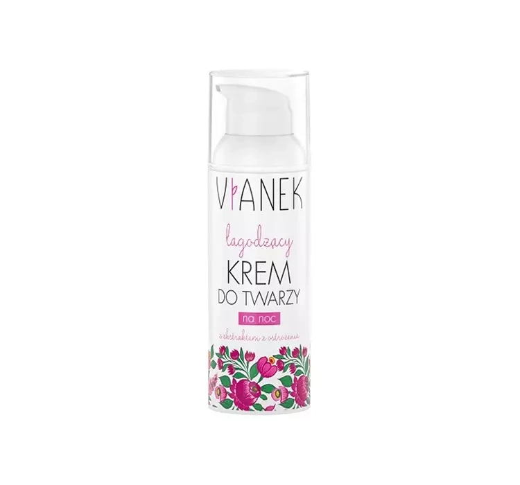 Die beruhigende Nachtcreme ist für gereizte, empfindliche Gesichtshaut bestimmt, die zu Allergien und Rötungen neigt. Ihre natürliche Formel ist reich an Traubenkern-, Sonnenblumen- und Kokosöl, die Feuchtigkeit spenden und die Wasser-Lipid-Barriere wieder aufbauen. Die Creme enthält auch einen Distelextrakt, der die Funktionen der Haut reguliert, für ihre nächtliche Regeneration sorgt und ihre richtige Farbe wiederherstellt. Darüber hinaus wirkt das Vorhandensein von Pentanol und Allantoin in der Zusammensetzung beruhigend, wodurch das Gefühl von Anspannung und Unbehagen verringert wird.