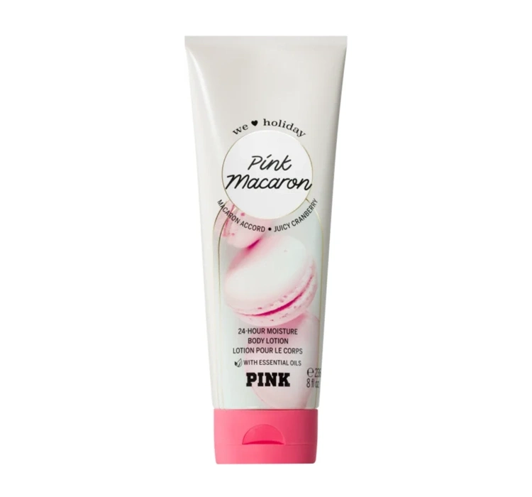 Victoria's Secret Pink Macaron ist eine außergewöhnliche Körperlotion, die den süßen, verlockenden Duft von Makronen mit saftigen Cranberries kombiniert. Die leichte Formel spendet sofort Feuchtigkeit, macht die Haut weich, glatt und strahlend und hüllt den Körper in einen wunderbaren Duft. Es ist die ideale Art, sich täglich eine Portion Luxus und Freude zu gönnen, die die Sinne in eine magische Welt süßer Freuden entführt.