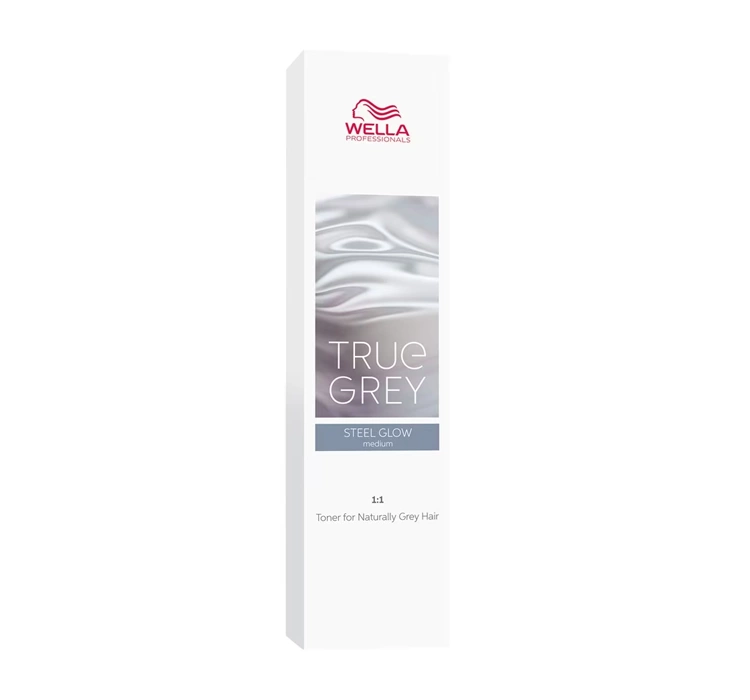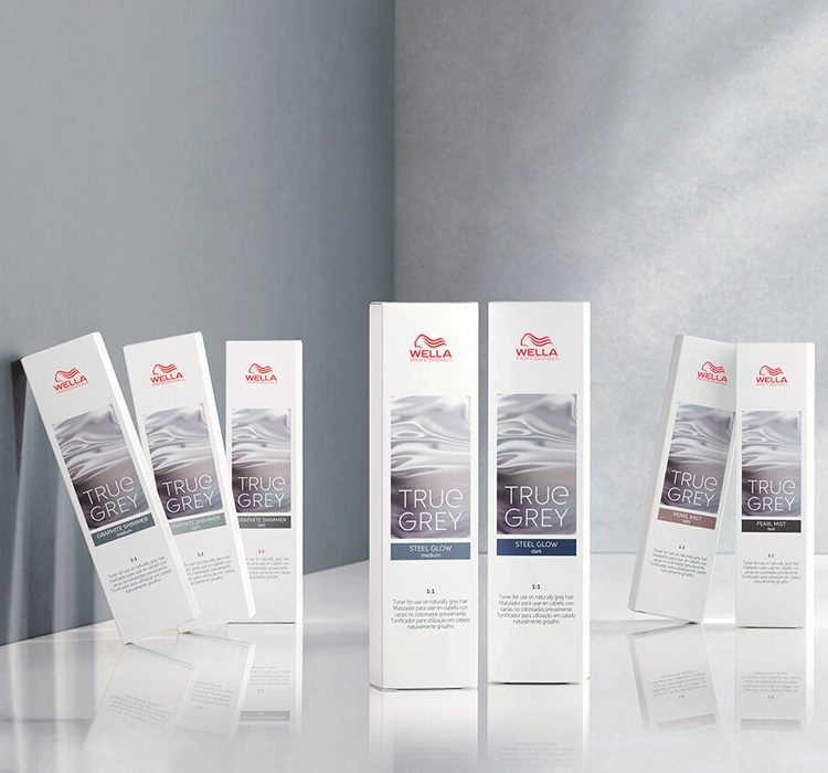 Wella Professionals True Grey ist eine Produktserie für die subtile Färbung von natürlich grauem Haar. Sie umfasst drei Hauptprodukte: einen Aktivator, eine klärende und glanzverleihende Spülung sowie sieben Toner in verschiedenen Nuancen.