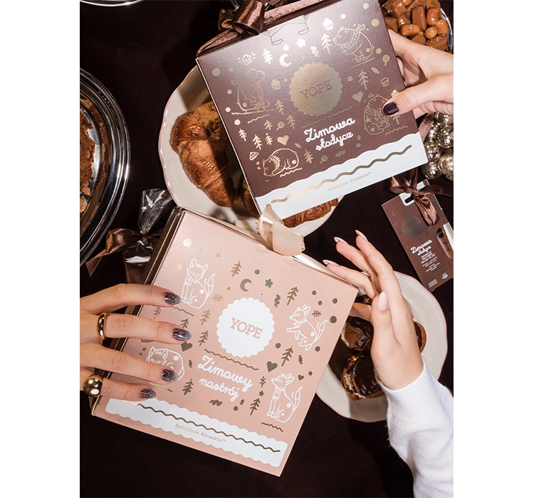 Die Yope Winterstimmung Serie ist eine besondere Kosmetik-Kollektion, die in die magische Stimmung winterlicher Tage und festlicher Freude eintaucht. Umhüllende Formeln pflegen die Haut und hinterlassen einen einzigartigen Duft, der Noten von harziger Amber, Zedernholz und feinem Pfeffer vereint. Diese Kombination beruhigt die Sinne und verwandelt jeden Moment in ein angenehmes Pflegeritual.