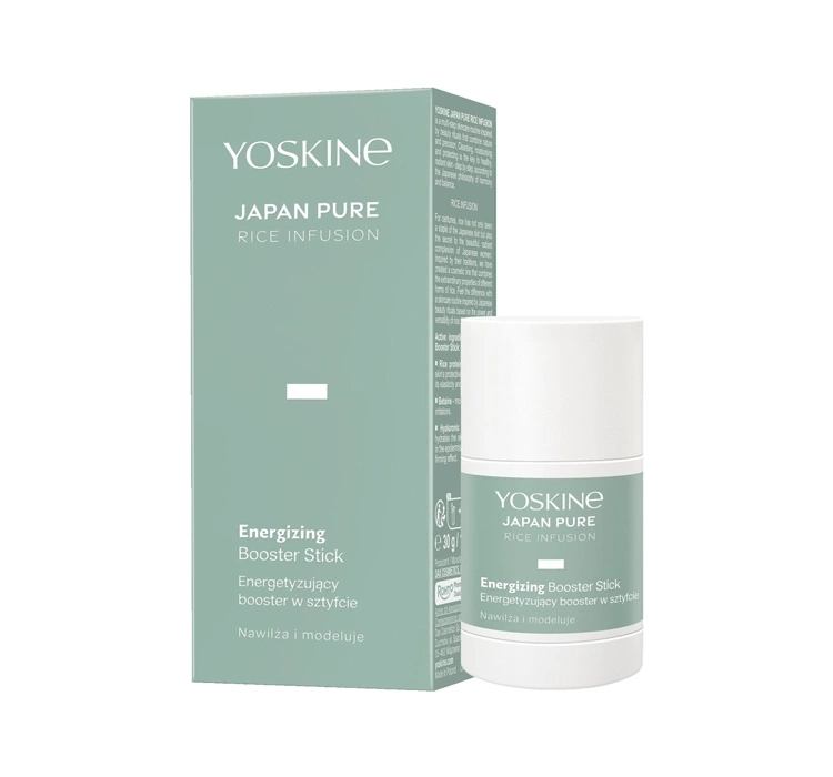 Das Energie-Booster-Serum im Stick Yoskine Japan Pure Rice Infusion ist eine moderne Lösung für die Hautpflege, inspiriert von der japanischen Schönheitsphilosophie. Dieser kompakte und äußerst praktische Gesichts-Booster von Yoskine erfrischt die Haut sofort, verleiht ihr einen gesunden Glanz und verbessert die Gesichtsform. Dank der Formel, angereichert mit Reisproteinen, Betain und Hyaluronsäure, spendet das Gesichtsserum Yoskine Japan Pure intensive Feuchtigkeit, beruhigt Irritationen und wirkt straffend.