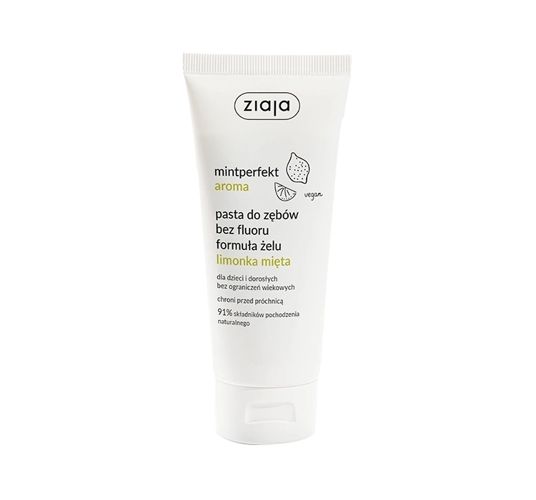 Zahnpasta-Gel Ziaja Mintperfekt Aroma ist ein mildes, veganes Produkt für die tägliche Mundhygiene, geeignet für Kinder und Erwachsene – ohne Altersbeschränkung. Basierend auf natürlichen Mineralstoffen stellt sie eine moderne Alternative zu herkömmlichen fluoridhaltigen Zahnpasten dar. Ihre gelartige Konsistenz und der frische Geschmack von Minze und Limette machen die Anwendung angenehm und erfrischend. Das Produkt enthält 91 % Inhaltsstoffe natürlichen Ursprungs und ist glutenfrei, wodurch es auch für Menschen mit speziellen Ernährungs- und Pflegeanforderungen geeignet ist.