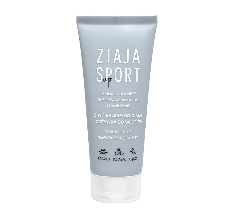 Die 2in1 Haarspülung und Körperbalsam Ziaja Sport Up Mineralien für NMF enthält bis zu 90 % Inhaltsstoffe natürlichen Ursprungs und besitzt eine biologisch abbaubare Formel, die den OECD-Richtlinien entspricht. Die Haut wird glatt, weich und elastisch, das Haar sieht gesund und natürlich aus. Die 2in1 Spülung und der Balsam von Ziaja Sport Up sind ideal nach dem Training, auf Reisen oder für die tägliche Pflege.